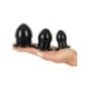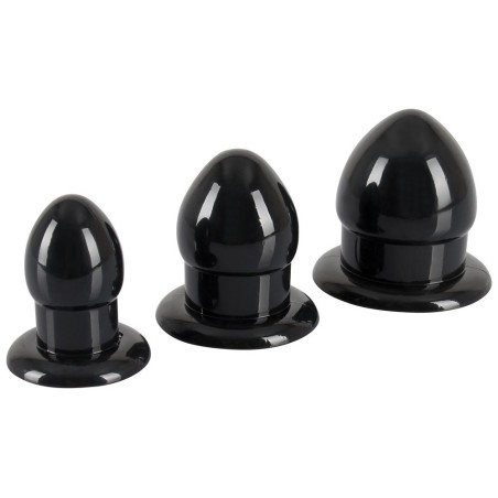 Per un emozionante allenamento anale! Tre set anali / barelle anali neri lucidi, ciascuno con supporto / fermo. Inizia con il piccolo plug anale (lunghezza totale 5,2 cm) e goditi una profondità di inserimento di 4,5 cm al massimo. 3 cm di diametro nell'entrata posteriore e aumentare con il tappo centrale (lunghezza totale 5,7 cm) e la sua profondità di inserimento di 5 cm con un diametro di max. 3,9 cm. E se vuoi aumentare ancora di più il tuo piacere anale, prendi il tappo più grande (lunghezza totale 6,2 cm) con una profondità di inserimento di 5,7 cm e un diametro imponente di max. 4,9 cm.