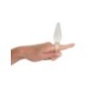 Fallo anale plug finger plug anal dildo con superficie lisciacon anello per dito. Trasparente. Lunghezza totale 9,5 cm, profondità 7 cm, Ø 2,7 cm. materiale: TPR, prifo ftalati in conformità UE al regolamento 1907/2006/CE.