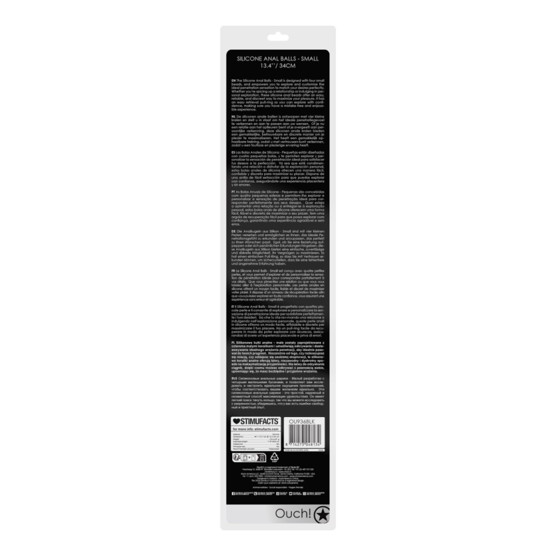Le palline anali in silicone - Small sono progettate con quattro piccole sfere e consentono di esplorare e personalizzare la sensazione di penetrazione ideale per soddisfare i vostri desideri. Sia che stiate vivacizzando una relazione, sia che vi dedichiate all'esplorazione personale, queste sfere anali in silicone offrono un modo facile, affidabile e discreto per massimizzare il vostro piacere. Il sistema è dotato di un anello per il recupero facile che consente di esplorare in tutta tranquillità, assicurandovi un'esperienza piacevole e senza errori.