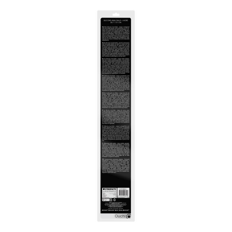 The Silicone Anal Balls - Large is designed with four large beads, and empowers you to explore and customize the ideal penetration sensation to match your desires perfectly. Whether you're spicing up a relationship or indulging in personal exploration, these silicone anal beads offer an easy, reliable, and discreet way to maximize your pleasure. It has an easy retrieval pull-ring so you can explore with confidence, making sure you have a mistake-free and enjoyable experience.