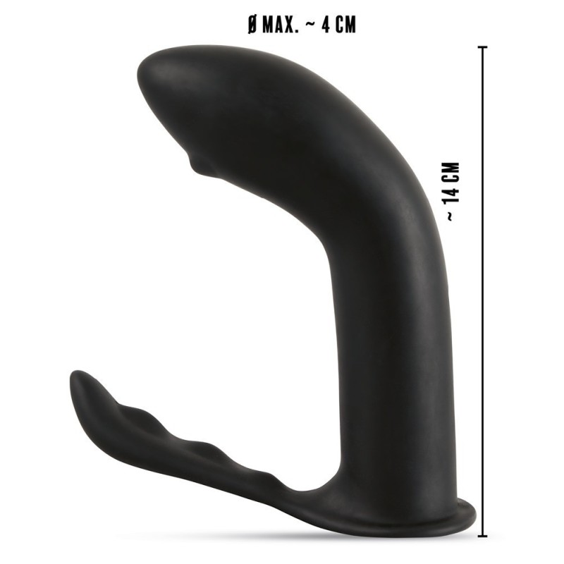 La doppia stimolazione calda! Questa spina ergonomica stimola contemporaneamente la prostata e il perineo. La punta curva si trova nella zona P, mentre il ponte del perineo massaggia dall'esterno con la sua eccitante struttura ad onde. L'elevata flessibilità di questo plug anale e la cinghia pull-back facilitano anche il divertimento da soli.