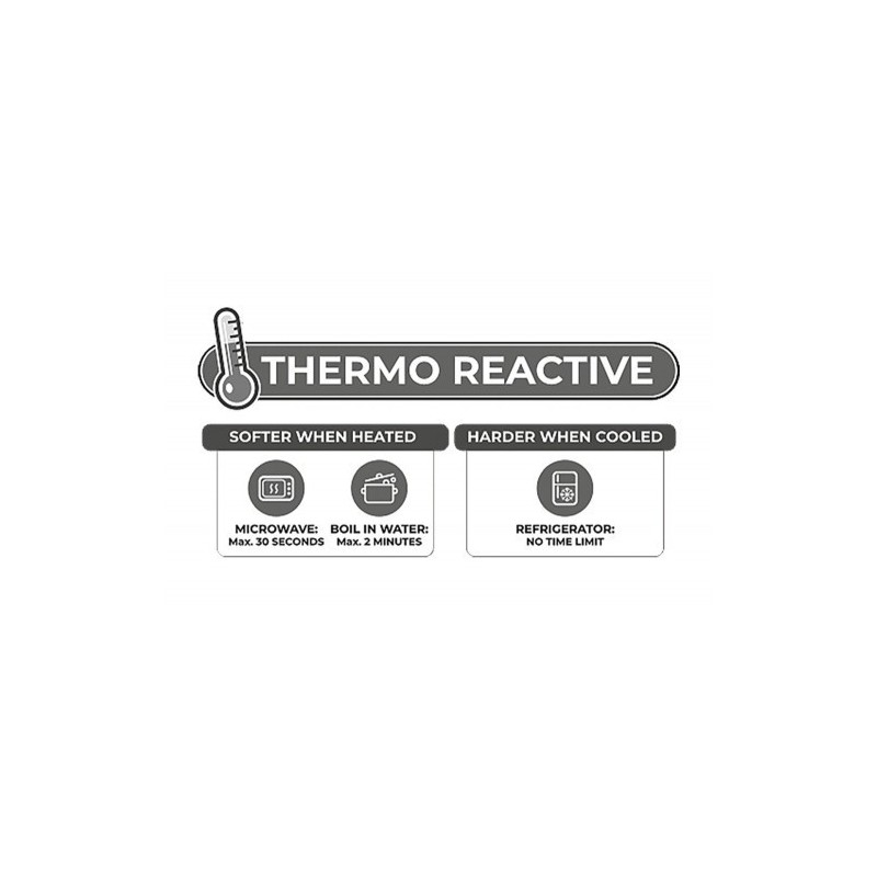 Questa spina con supporto si adatta individualmente a chi la indossa. A temperature elevate diventa morbida e può essere deformata. Questo può essere ottenuto utilizzando un forno a microonde (max. 30 secondi) o acqua calda (max. 2 minuti). Nel frigorifero, invece, la spina diventa dura. Perfetto per i giochi di temperatura e di materiali.