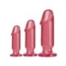 Lavorate per raggiungere la beatitudine della backdoor con il Crystal Jellies Anal Starter Kit! Perfetto per i principianti, ogni plug è dotato di una comoda base piatta per una facile indossabilità, mentre la testa pronunciata e l'albero liscio sono sicuri di dare una certa soddisfazione alle gelatine! Il plug piccolo ha una larghezza di 1" e una lunghezza utile di 3", quello medio ha una larghezza di 1,5" e una lunghezza utile di 4", mentre quello grande ha una larghezza di 2" e una lunghezza utile di 5". Queste gelatine possono essere indossate da sole o utilizzate con qualsiasi imbracatura compatibile con gli o-ring. Disponibili in rosa, trasparente e viola.