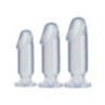 Lavorate per raggiungere la beatitudine della backdoor con il Crystal Jellies Anal Starter Kit! Perfetto per i principianti, ogni plug è dotato di una comoda base piatta per una facile indossabilità, mentre la testa pronunciata e l'albero liscio sono sicuri di dare una certa soddisfazione alle gelatine! Il plug piccolo ha una larghezza di 1" e una lunghezza utile di 3", quello medio ha una larghezza di 1,5" e una lunghezza utile di 4", mentre quello grande ha una larghezza di 2" e una lunghezza utile di 5". Queste gelatine possono essere indossate da sole o utilizzate con qualsiasi imbracatura compatibile con gli o-ring. Disponibili in rosa, trasparente e viola.