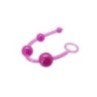 Cosa è? Si tratta di una catena lunga 20 centimetri di 4 palline in PVC. Queste palline (la più piccola con un diametro di un centimetro e mezzo, la più grande di 3), morbide al tatto e viola, sono adatte per tutti i tipi di pelle. Grazie al filo flessibile e al gancio di trazione, le sfere si possono introdurre ed estrarre facilmente, donando un piacere costante.