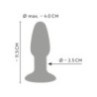 Lunghezza totale 11,5 cm, lunghezza di inserimento 10 cm, Ø massimo 4 cm, Ø conico 2,5 cm.