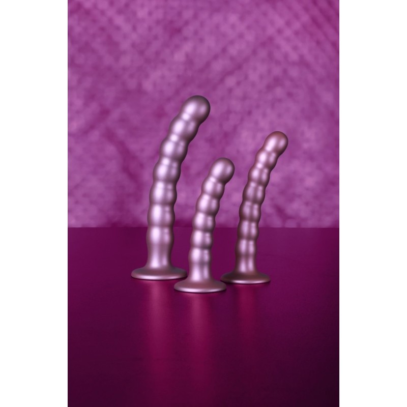 Il dildo in silicone per punto G con perline da 5" / 13 cm, con la sua forte ventosa e il bel colore metallico, è in una classe a sé stante. Che tu stia giocando da solo, con il tuo partner o addirittura usandolo con uno strap-on, esplora nuovi piaceri con questi bellissimi dildo in silicone premium e silicone liquido di Ouch! Si abbinano perfettamente alle mutandine Ouch Strap-on.