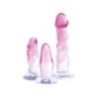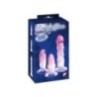 Set di 3 pezzi per l'allenamento anale di Crystal Clear composto da 1 plug anale conico e liscio e 2 dildo anali con glande sagomato. Dimensioni diverse: