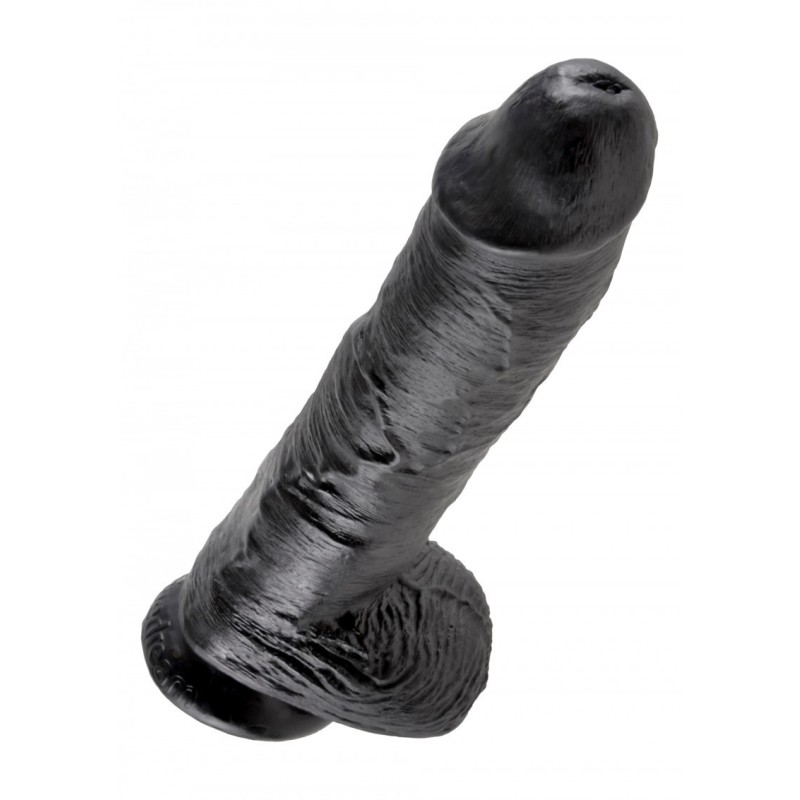 Grosso dildo nero in gomma, fallo maxi di 27 cm realistico King Cock 10" With Balls. Mega fallo made in USA, privo di ftalati, senza lattice. Vuoi che il tuo dildo sembri e si senta proprio come il grosso pene eretto che hai sempre desiderato? Smetti di sognare, ecco per te la linea King Cock della Pipedream! Ogni vena, il glande ed ogni dettaglio sono attentamente lavorati con dettagli incredibili per darti l'esperienza più realistica mai immaginata. La potente base a ventosa si attacca a quasi tutte le superfici piane ed inoltre rende compatibile questo dildo con ogni imbracatura strap on. Realizzato in un impianto di produzione di gomma di ultima generazione di Pipedream, ogni King Cock è privo di ftalati, senza lattice, corposo e antiallergico. Meglio di tutti, King Cock è orgogliosamente prodotto negli Stati Uniti in modo da poter godere di questo capolavoro con serenità. Grosso dildo nero in gomma super realistico Pipedream King Cock 10" con testicoli. La forte ventosa permette l'applicazione a piastrelle, specchi, comodini ecc.. per una fantastica cavalcata a mani libere! Lunghezza totale: 27 cm Lunghezza inseribile: 20,5 cm Diametro: 5,1 cm