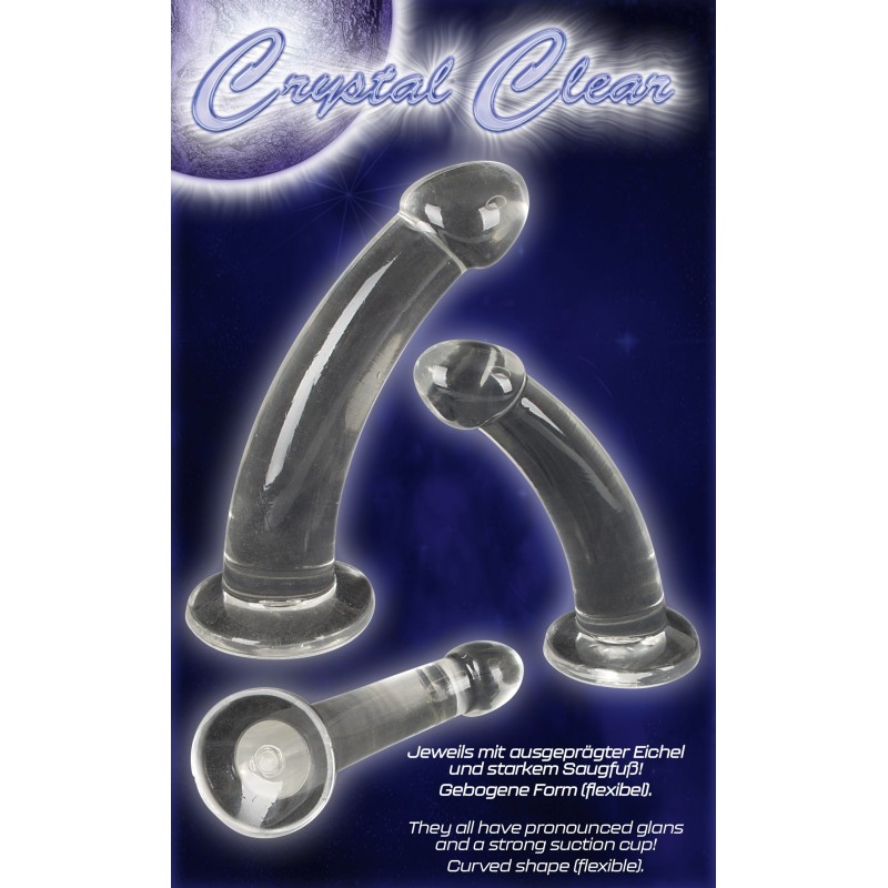 Ogni dildo trasparente è idealmente curvo ed enormemente flessibile, con glande pronunciato e forte base di aspirazione.