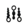 set kit plug fallo anale 3 pz dildo in silicone nero satisfyer butt plugs black