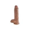 Grosso dildo nero in gomma, fallo maxi di 27 cm realistico King Cock 10" With Balls. Mega fallo made in USA, privo di ftalati, senza lattice. Vuoi che il tuo dildo sembri e si senta proprio come il grosso pene eretto che hai sempre desiderato? Smetti di sognare, ecco per te la linea King Cock della Pipedream! Ogni vena, il glande ed ogni dettaglio sono attentamente lavorati con dettagli incredibili per darti l'esperienza più realistica mai immaginata. La potente base a ventosa si attacca a quasi tutte le superfici piane ed inoltre rende compatibile questo dildo con ogni imbracatura strap on. Realizzato in un impianto di produzione di gomma di ultima generazione di Pipedream, ogni King Cock è privo di ftalati, senza lattice, corposo e antiallergico. Meglio di tutti, King Cock è orgogliosamente prodotto negli Stati Uniti in modo da poter godere di questo capolavoro con serenità. Grosso dildo nero in gomma super realistico Pipedream King Cock 10" con testicoli. La forte ventosa permette l'applicazione a piastrelle, specchi, comodini ecc.. per una fantastica cavalcata a mani libere! Lunghezza totale: 27 cm Lunghezza inseribile: 20,5 cm Diametro: 5,1 cm