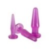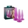 Kit tre falli plug anali viola di dimensioni variabili, stampato flessibile e conica. Sono tutte dotate di una base stabile per provare sempre un piacere differente . privo di Ftalato ai sensi del regolamento UE 1907/2006 / CE.