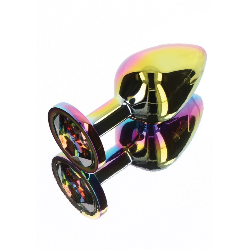 Il Twilight Booty Jewel è un plug anale di qualità con un gioiello arcobaleno nella base, che fa risplendere di colore la tua backdoor! L'elegante plug presenta una silhouette affusolata e una base svasata, impreziosita da un gioiello arcobaleno. Realizzato in alluminio, il Twilight Booty Jewel è liscio al tatto e completamente sicuro per il corpo. Un must della collezione Anal Play di TOYJOY. È il plug unisex perfetto per aggiungere un tocco glamour e colorato alle tue avventure anali.