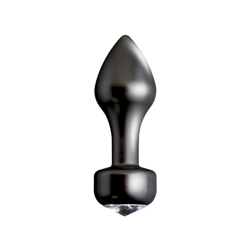 Plug anale realizzato in alluminio nero . Rifinito con superficie liscia e arrotondata . Senza ftalati con base ampia per un utilizzo sicuro . Il Plug anale Limited Edition e rifinito nella parte inferiore da un diamente di cristallo con taglio a forma di diamante.