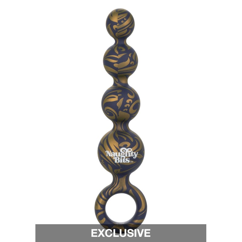 Il Naughty Bits™ Butt Balls™ Silicone Booty Beads è fatto per tutte le vostre esigenze anali con un silicone morbido, perline affusolate e un facile anello di recupero. Il piccolo plug ha un robusto anello di recupero a forma di O per un inserimento confortevole, una stimolazione eccitante e una rimozione sicura e delicata. Perfetto sia per i principianti che per gli esperti di erotismo, l'asta affusolata aumenta in circonferenza per intensificare il piacere. La collezione Naughty Bits™ è fatta per risaltare in qualsiasi comodino con design accattivanti e caratteristiche orgasmiche. Il silicone ultra felpato e il motivo marmorizzato dorato di questa splendida sonda anale faranno sorridere anche l'amante più elegante prima e dopo.