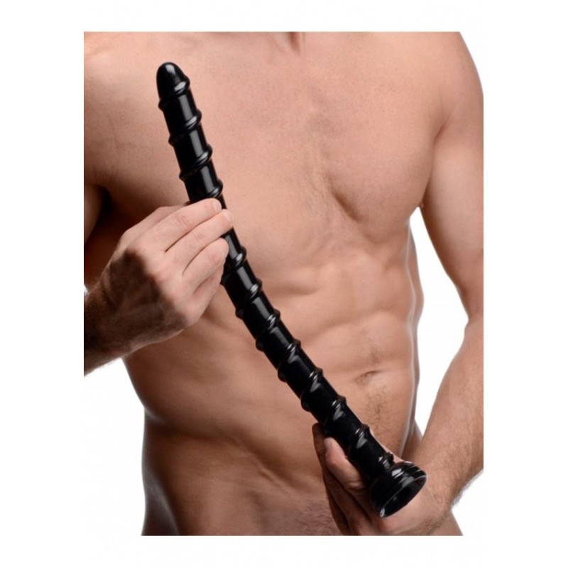 Godete con un'asta enorme e strutturata! Questo dildo solido, ma flessibile, ha una cresta ondulata che corre lungo la sua lunghezza per darvi ancora più sensazioni mentre lo introducete nel vostro buco. Quanto di questo dildo extra lungo potete inserire dentro di voi? La potente base di aspirazione si fissa alla maggior parte delle superfici piane, in modo da avere il massimo controllo, anche durante il gioco in solitaria. Ampliate il vostro gioco di dimensioni e portate il sondaggio profondo a un livello completamente nuovo!