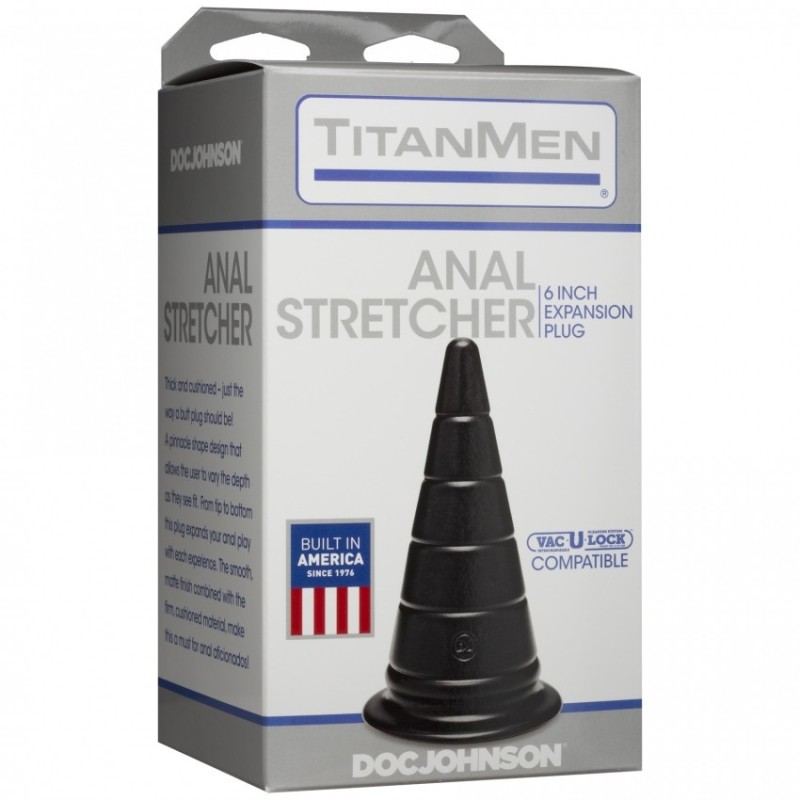 Il plug di espansione TitanMen Anal Stretcher 6" è caratterizzato da una forma a cono per un ingresso facile e un gioco personalizzato adatto a ogni livello di esperienza. La punta stretta si allarga drasticamente fino a diventare un'ampia base rotonda da un'estremità all'altra della lunghezza di inserimento di 6", mentre la texture a coste assicura il piacere ad ogni movimento.