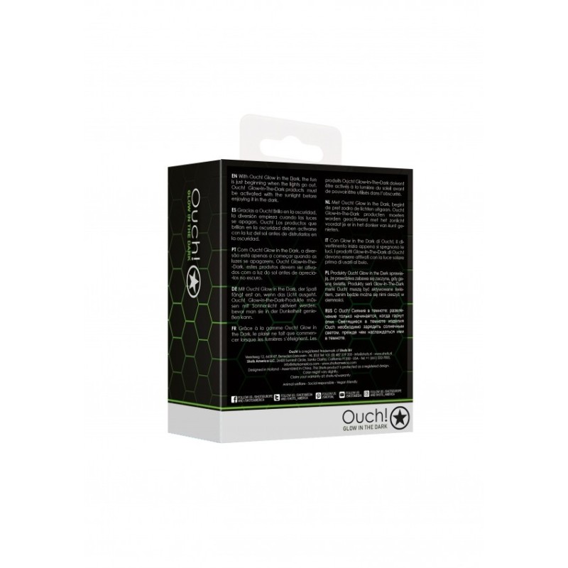 Glow-In-The-Dark di Ouch!, il futuro del bondage è qui. Progettato con un'estetica bondage autentica, ma con il piacere aggiunto delle proprietà luminescenti al buio, i dettagli in verde fluorescente trasformeranno ogni evento in qualcosa di unico. L'azione anale orgasmica è ciò che stai cercando? Questo plug anale in vetro che si illumina al buio promette di non deludere. Rilassati e goditi il piacere anale più appagante della tua vita, da solo o con il tuo compagno di giochi. Basta un po' di lubrificante e sei pronto. I prodotti Glow-In-The-Dark di Ouch! devono essere attivati con la luce solare prima di usarli al buio.