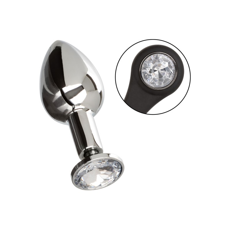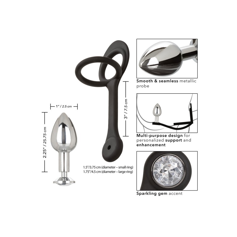 Informazioni aggiuntive : Potenziatore in silicone elastico e resistente con mini-sonda metallica liscia e senza cuciture, Design multifunzionale per un sostegno e un potenziamento personalizzato, Il plug e l'enhancer in metallo si smontano per una facile pulizia, Il metallo trattiene il calore o il freddo per giocare con la temperatura, Accento di gemme scintillanti, Non si appanna e non contiene nichel.