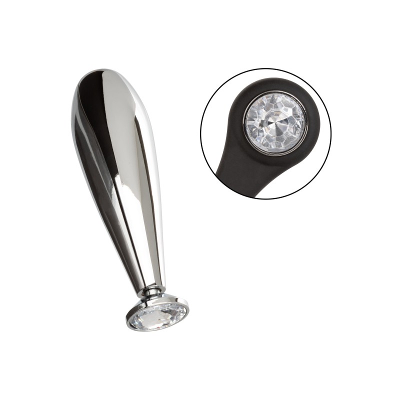 Informazioni aggiuntive : Potenziatore in silicone elastico e resistente con sonda metallica sottile, liscia e senza cuciture, Design multiuso per un sostegno e un potenziamento personalizzato, Il plug e l'enhancer in metallo si smontano per una facile pulizia,Il metallo trattiene il calore o il freddo per giocare con la temperatura, Accento di gemme scintillanti, Non si appanna e non contiene nichel.