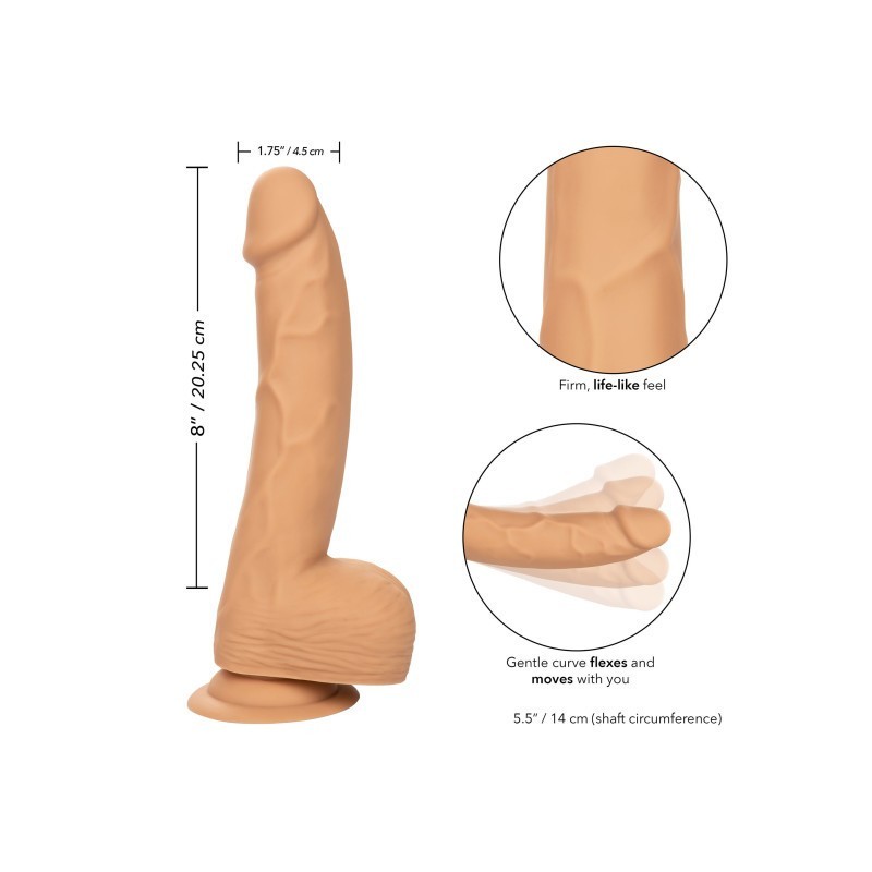Informazioni aggiuntive : Perno in puro silicone da 8"/20,25 cm, Sensazione salda e realistica, La curva delicata si flette e si muove con voi, Robusta base a ventosa.