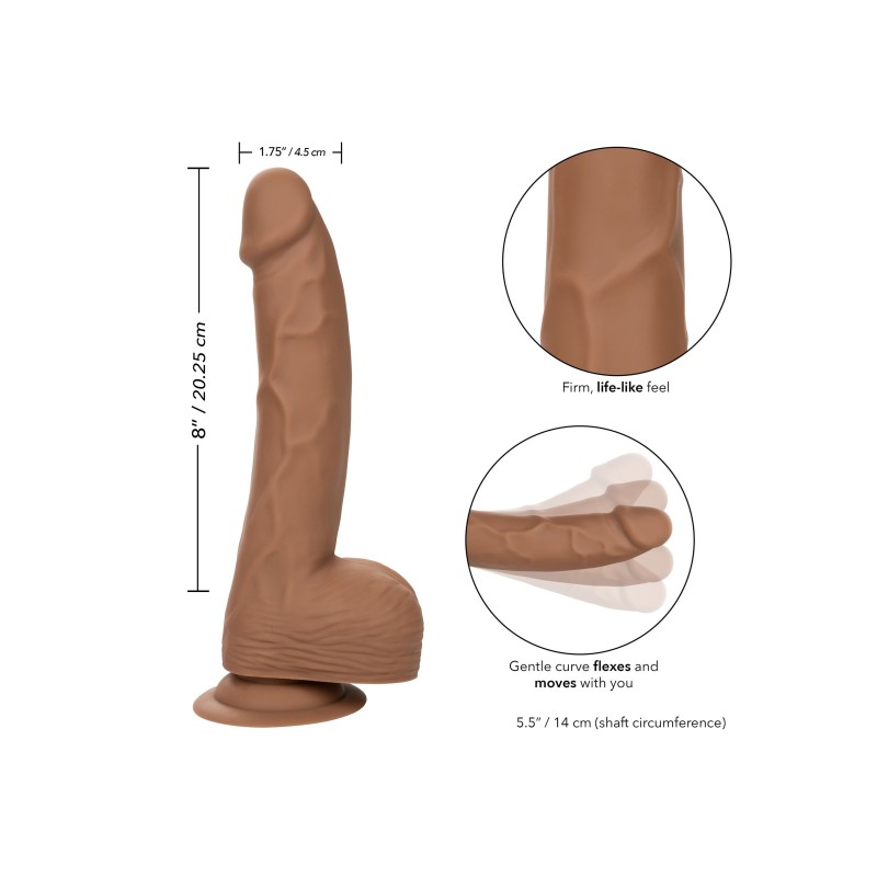 Informazioni aggiuntive : Perno in puro silicone da 8"/20,25 cm, Sensazione salda e realistica, La curva delicata si flette e si muove con voi, Robusta base a ventosa.