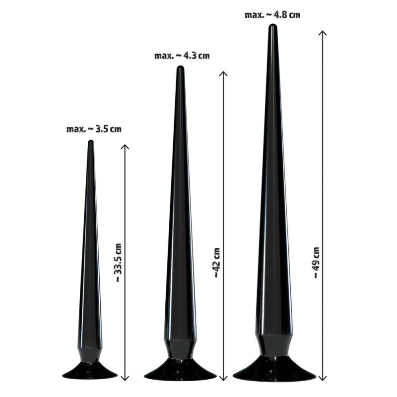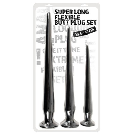 Trio di spine per un profondo piacere anale! Super Long Flexible Butt Plug Set by You2Toys: 3 x plug anali extra lunghi in diverse dimensioni e pesi. Ogni plug è molto flessibile e pieghevole con una punta stretta e sensibile e una base di aspirazione che serve anche da tappo. Dimensioni: Plug Small Lunghezza totale 33,5 cm, lunghezza d'inserimento 32 cm, Ø 1 cm - 3,5 cm, 161 g di peso. Plug Medium Lunghezza totale 42 cm, lunghezza d'inserimento 40,5 cm, Ø 1 cm - 4,3 cm, 268 g di peso. Spina Large Lunghezza totale 49 cm, lunghezza d'inserimento 46 cm, Ø 1,5 cm - 4,8 cm, 453 g di peso. PVC.