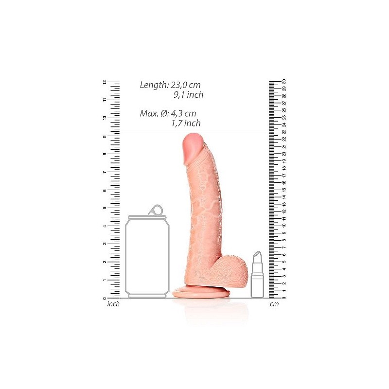 Il Real Rock è progettato per farti divertire al massimo. Un dildo solido e morbido al tatto, dall'aspetto naturale e delle dimensioni giuste. In combinazione con le vene realistiche sull'asta, che danno una stimolazione extra all'interno, questo è un dildo che non dimenticherai nel tuo comodino. Questo dildo realistico ha una leggera curva, che lo rende ideale per la stimolazione del punto G. Goditi questo modello dentro e fuori! Lo scroto e il glande ben proporzionato sono i dettagli che rendono l'utilizzo di questo dildo così realistico. La ventosa consente un uso resistente a mani libere (su una superficie liscia) e offre anche la possibilità di utilizzare questo RealRock in un'imbracatura. Con tutte queste opzioni, avrai un orgasmo esplosivo a cui non mancherà nulla.