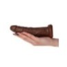 Marco è un dildo realistico, progettato con un fusto dettagliato, caratterizzato da venature in rilievo e un glande ben rifinito, completo di pieghe naturali della pelle. Realizzato in materiale morbido e flessibile, offre una base a ventosa per garantire stabilità durante l'uso e permette l'uso in diverse posizioni.