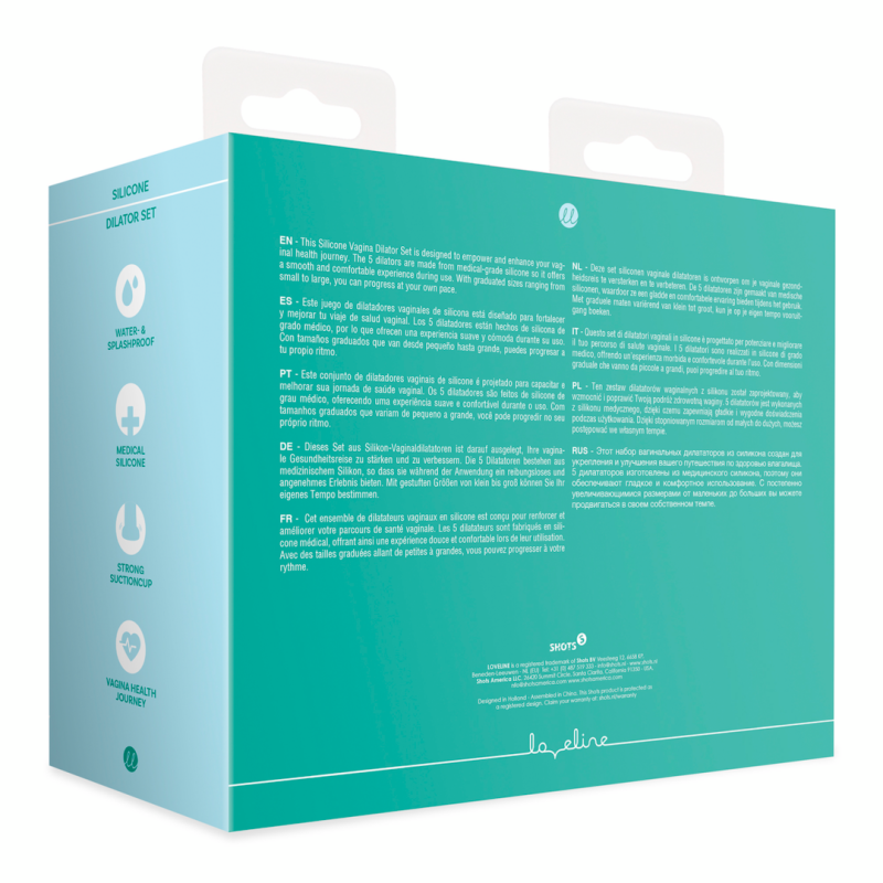 Questo set di dilatatori vaginali in silicone è progettato per potenziare e migliorare il tuo percorso di salute vaginale. I 5 dilatatori sono realizzati in silicone di grado medico, quindi offrono un'esperienza fluida e confortevole durante l'uso. Con dimensioni graduate che vanno da piccole a grandi, puoi progredire al tuo ritmo. Le dimensioni della taglia XS sono 1,9 x 1,9 x 3,6 pollici (4,7 x 4,7 x 9,2 cm), diametro 0,7 pollici (1,7 cm) e lunghezza inseribile 3,5 pollici (8,8 cm). Le dimensioni della taglia S sono 2,1 x 2,1 x 4,1 pollici (5,4 x 5,4 x 10,5 cm), diametro 0,8 pollici (2,1 cm) e lunghezza inseribile 4,0 pollici (10,1 cm). Le dimensioni della taglia M sono 2,4 x 2,4 x 4,6 pollici (6,2 x 6,2 x 11,8 cm), diametro 1,0 pollici (2,5 cm) e lunghezza inseribile 4,5 pollici (11,4 cm). Le dimensioni della taglia L sono 2,8 x 2,8 x 5,1 pollici (7,2 x 7,2 x 12,9 cm), diametro 1,1 pollici (2,9 cm) e lunghezza inseribile 4,9 pollici (12,5 cm). Le dimensioni della taglia XL sono 3,2 x 3,2 x 5,7 pollici (8,1 x 8,1 x 14,4 cm), diametro 1,3 pollici (3,2 cm) e lunghezza inseribile 5,5 pollici (14,0 cm).