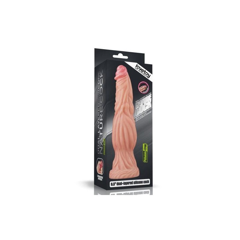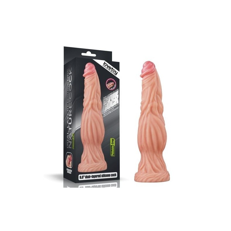 9.5 Dual layered Platinum Silicone di Lovetoy è un dildo in silicone a doppio strato, incredibilmente realistico e caratterizzato da un fusto imponente e un glande sporgente che regala sensazioni autentiche ed un piacere reale. Ha dimensioni esagerate che lasciano a bocca aperta, è morbido al tatto e la sua potente base a ventosa consente di fissarlo su qualsiasi superficie liscia per stimolazioni uniche in diverse posizioni. Privo di ftalati e di latex, 9.5 Dual layered Platinum Silicone ha venature, texture e forme riproducono al tatto la sensazione di penetrazione reale. Rivestimento impermeabile per stimolazioni potenti anche in acqua.