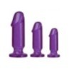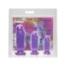 Lavorate per raggiungere la beatitudine della backdoor con il Crystal Jellies Anal Starter Kit! Perfetto per i principianti, ogni plug è dotato di una comoda base piatta per una facile indossabilità, mentre la testa pronunciata e l'albero liscio sono sicuri di dare una certa soddisfazione alle gelatine! Il plug piccolo ha una larghezza di 1" e una lunghezza utile di 3", quello medio ha una larghezza di 1,5" e una lunghezza utile di 4", mentre quello grande ha una larghezza di 2" e una lunghezza utile di 5". Queste gelatine possono essere indossate da sole o utilizzate con qualsiasi imbracatura compatibile con gli o-ring. Disponibili in rosa, trasparente e viola.