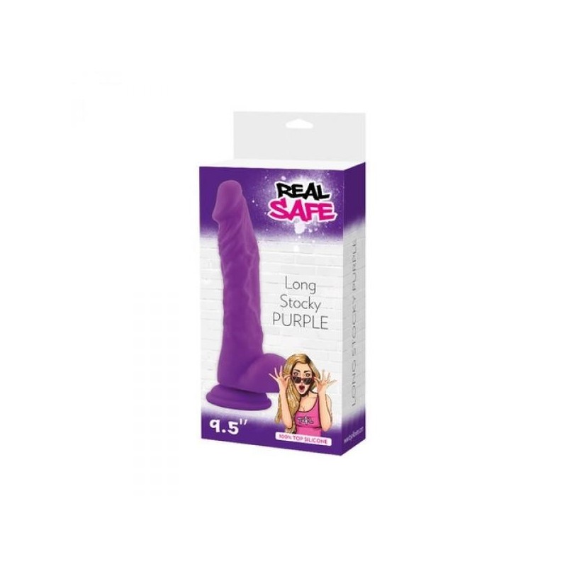 Realistico dildo fallo Vaginale con testicoli ventosa in silicone Stocky long purple