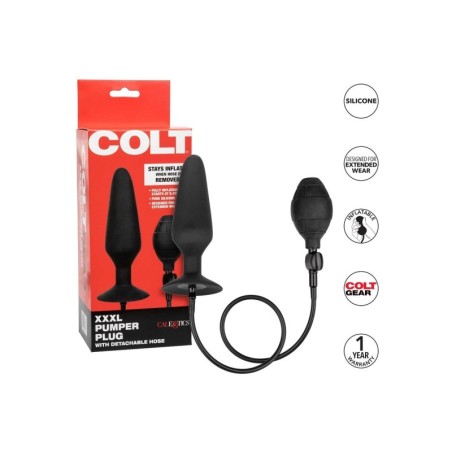 I pionieri del piacere lo hanno fatto di nuovo con il COLT® XXL Pumper Plug con il tubo staccabile. Questa sonda unica nel suo genere offre un piacere super con un corpo gonfiabile, è sufficiente collegare il tubo flessibile e pompare il bulbo easy-squeeze. Una volta raggiunta la dimensione desiderata, la sonda manterrà le sue dimensioni anche quando il tubo viene rimosso e il pulsante di rilascio rapido dell'aria consente di sgonfiarla e rimuoverla delicatamente. Per godere appieno dell'esaltante mondo del piacere anale, questa sonda gonfia in modo uniforme per offrire una stimolazione a misura d'uomo. La sonda in silicone flessibile ha una flessione perfetta per piegarsi e muoversi naturalmente con il corpo. La potente base a ventosa è perfetta per i giochi di piacere creativi, la sonda può essere utilizzata con o senza imbracatura o montata su una superficie piana per un divertimento da brivido.La sonda flessibile, il tubo e il bulbo sono realizzati in silicone senza cuciture con valvole di rilascio in plastica ABS. Prima del gonfiaggio, il plug in silicone ha una dimensione complessiva di 6,25“ x 1,75” (13,25 cm x 3,75 cm).