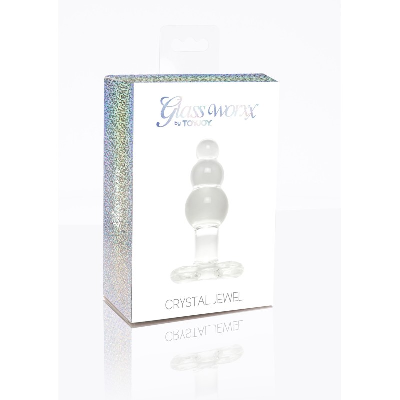 Il Crystal Jewel di TOYJOY GLASS WORXX è un plug anale elegante con curve sexy. La silhouette ha tre dossi di piacere, che si restringono in circonferenza verso la punta, e un'ampia base svasata per sicurezza e facile inserimento / rimozione. Liscio, elegante e di classe: TOYJOY GLASS WORXX è una scelta lussuosa e ipoallergenica per il piacere intimo. Questa elegante collezione di giocattoli in vetro è sensualmente scolpita per la tua massima soddisfazione. Questi giocattoli sessuali altamente resistenti sono realizzati in vetro non poroso di prima classe che si sente deliziosamente liscio al tatto e offrono molte opzioni di gioco sicure per il corpo. Riscalda il bicchiere sotto un rubinetto di acqua calda per un piacere caldo e seducente. Oppure raffredda il bicchiere con acqua fredda per un allettante tocco freddo che farà arricciare le dita dei piedi con gioia. TOYJOY GLASS WORXX è una scelta privilegiata per tutte le tue fantasie erotiche, fornendo pura felicità, scolpita nelle migliori sagome di vetro. Ora in una nuova confezione.