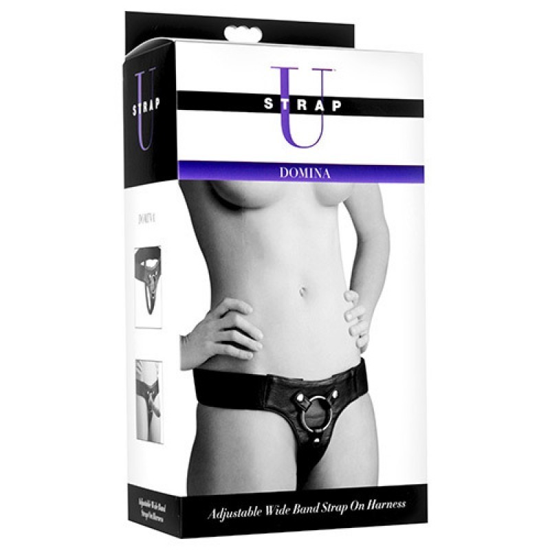 Domina Wide Band Strap On Harness è una cintura in cuoio e metallo capace di montare un fallo strap on. Indossate la vostra cintura dei desideri con fallo e completamente regolabile, un sex toy confortevole e godereccio della linea Strap U. Con una struttura di supporto con fascia larga che si regola tramite due cinghie in Velcro, potrete inserire il vostro fallo base preferito grazie anche allo standard O-ring. Basta indossarlo e metterlo in posizione e sarete pronti per iniziare a penetrare il vostro partner con un fallo di vostra scelta! La cintura può essere regolata in maniera totale e accoglie la maggior parte delle dimensioni.DILDO NON COMPRESO