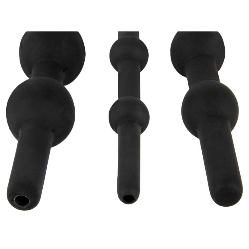 Set di allenamento per plug per pene con 3 diversi dilatatori. Tutti e tre realizzati in morbido silicone e con sfere stimolanti di diverso diametro. Ogni dilatatore a sfera ha una punta arrotondata e un anello di ritenzione per un facile inserimento e rimozione. Sono inoltre pieghevoli e flessibili per un uso delicato e confortevole e una regolazione ottimale.