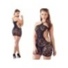 Elegante mini abito a rete fina con lavorazione più scura in stile barocco. Belle lestringhe sui fianchi e l'attaccatura al collo. Morbido ed elasticizzato per una perfetta indossatura.