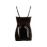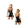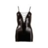 Abbigliamento donna per serate erotiche e Club. Sexy mini abito colore nero con tessuto effetto bagnato. Modello corto, aderente a bretelline con scollatura ad intreccio di stringhe che lasciano intravedere la parte centrale del seno.