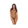 Tuta in rete nera di media trama con ampia apertura intima e sui fianchi, spalline sottoveste scollatura dritta avanti-retro. Misura unica vestibile dalla taglia 40 alla taglia 46.