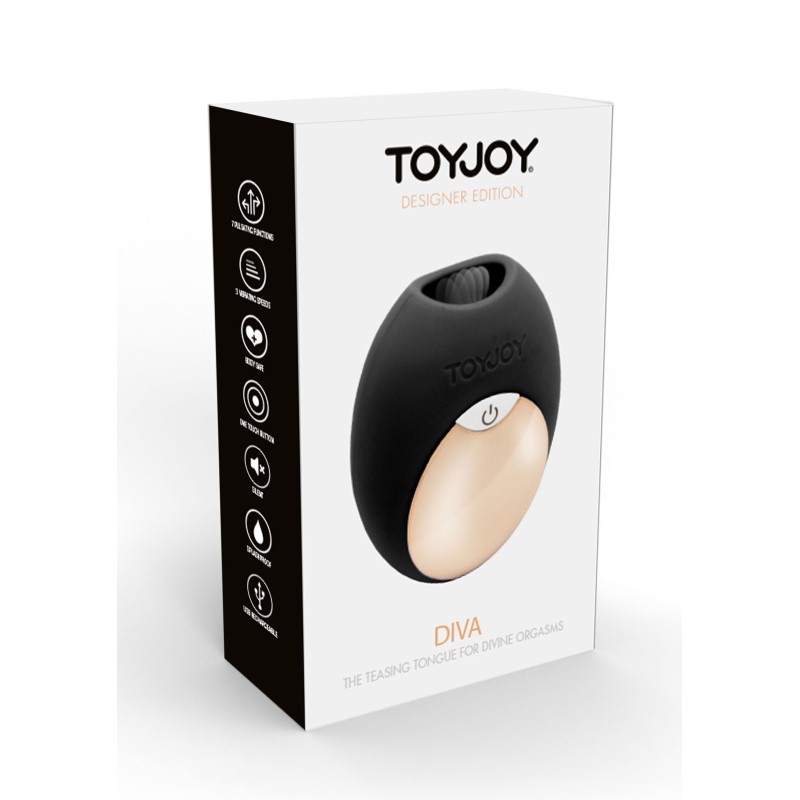 E' uno stimolatore innovativa che imita la sensazione di una lingua dolce che provoca i punti caldi. Il design presenta una ruota stile mulino ad acqua con morbidi accessori a forma di ventaglio. Quando gira, lo stimolatore unico crea un movimento "leccato", causando un clitoride piacere al tuo clitoride. Sperimenta orgasmi divini e una nuova dimensione celeste di divertimento intimo con questo incredibile fornitore di piacere. Diva è realizzata con materiali di alta qualità, come silicone morbido e plastica ABS. Lo stimolatore offre 3 velocità di vibrazione e 4 funzioni pulsanti.