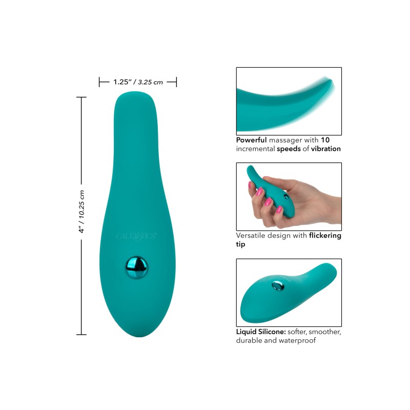 Infilate il Pixies Glider tra le dita per regalare sensazioni da far tremare le ginocchia ai vostri punti di piacere preferiti. La punta tremolante, il design a due lati e le 10 eccitanti velocità di vibrazione lo rendono il perfetto compagno di viaggio. Il massaggiatore curvo si inserisce tra le dita per consentire di stuzzicare in modo mirato ed eccitare con vibrazioni sagomate. Giocate con ogni aumento delle 10 velocità di vibrazione incrementali con il pulsante di controllo easy-touch.
