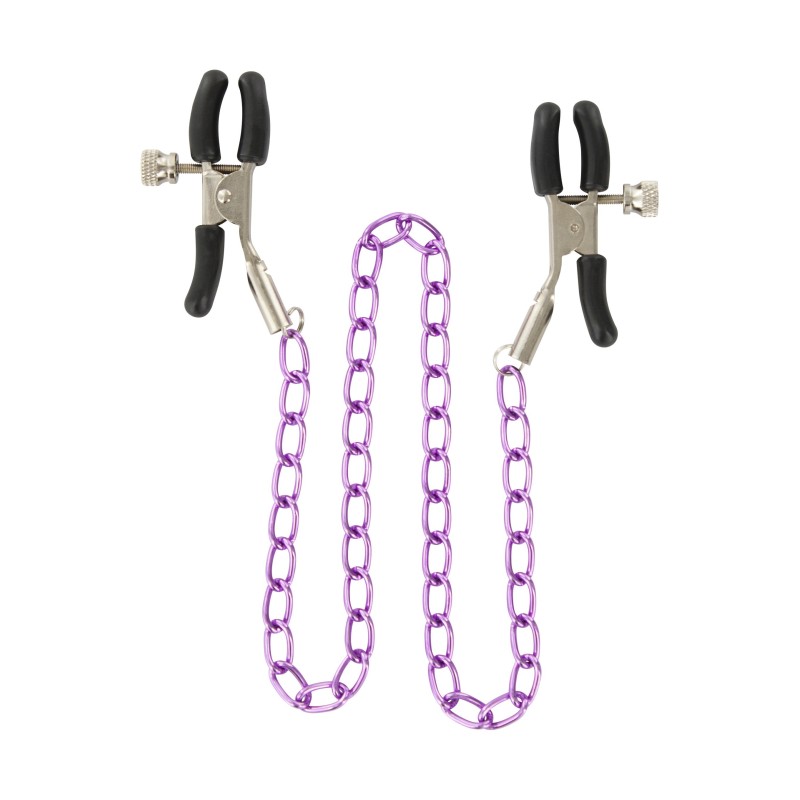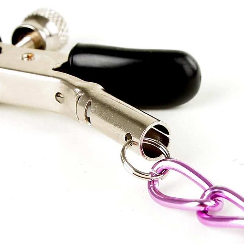 Catenella con pinze per capezzoli regolabili  . Stimulating Nipple Chain . Attaccate la vostra preda con queste mollette per seno . Le pinze per capezzoli fanno più paura di quanto dovrebbero . Ma con queste mollette non dovrete temere di soffrire troppo grazie alla regolazione potrete decidere di che dolore godere. I capezzoli grazie a questo oggetto bondage andranno a svegliare le terminazioni nervose stimolandole .