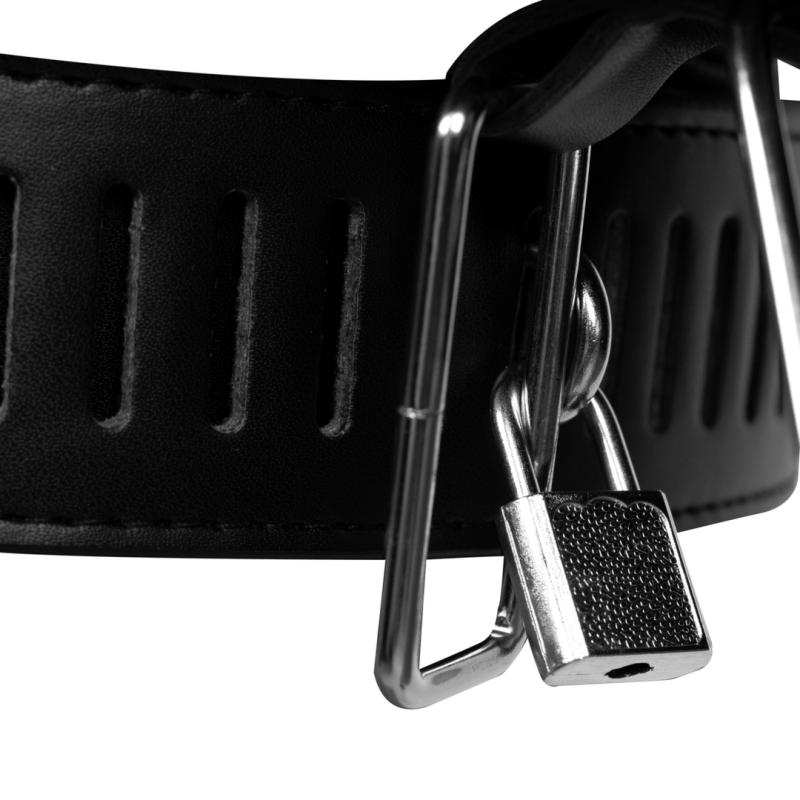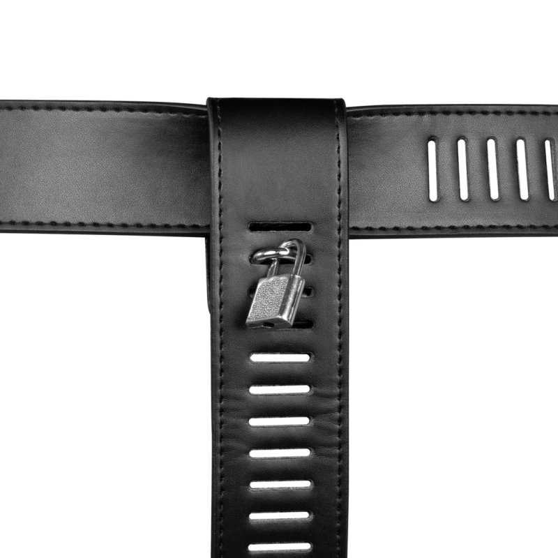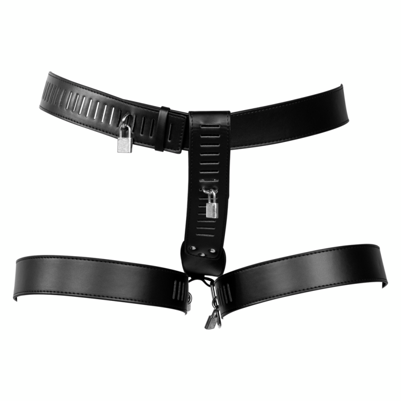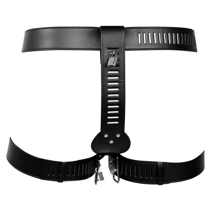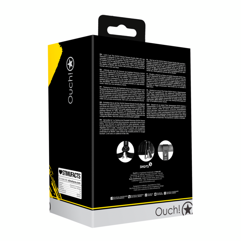 Bloccate! La cintura di castità femminile OUCH! Xtreme Female Chastity Belt with Leg Restraint è progettata per bloccare l'area più intima, dandovi il controllo completo sul vostro partner. La cintura è realizzata in pelle PU di alta qualità ed è dotata di cinghie regolabili per la vita, l'inguine e le cosce, per garantire una vestibilità perfetta per ogni corpo. Quando si esplorano le profondità del BDSM, questa cintura di castità promette un viaggio eccitante. Viene fornita con serratura e chiavi.