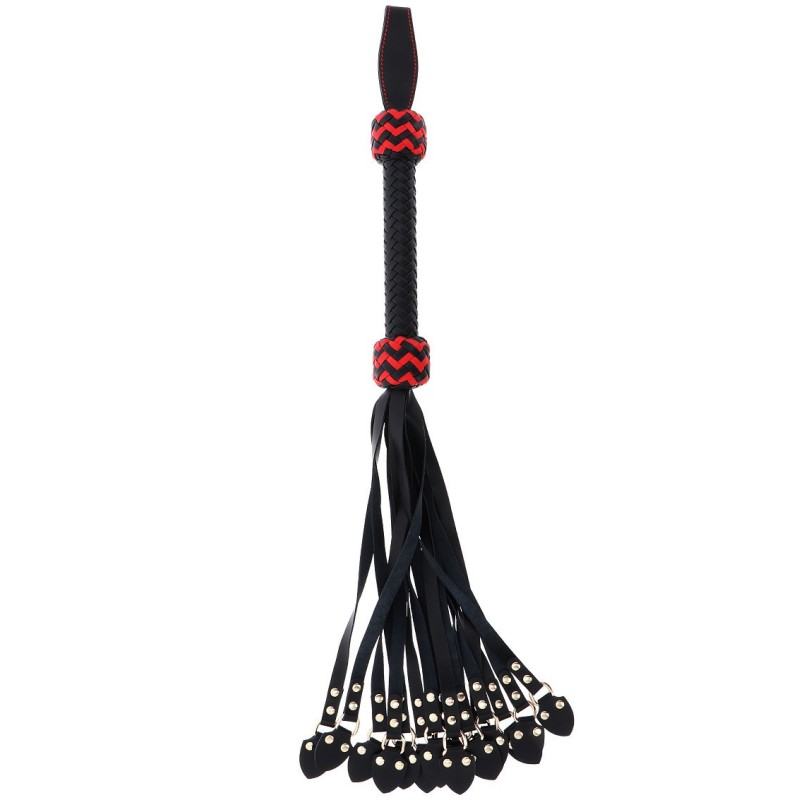 Lanciatevi in emozionanti avventure con la frusta Cat-o-Nine in vera pelle, ora dotata di code borchiate per un maggiore impatto. Progettata con code multiple e realizzata in pelle pregiata, questa frusta offre una combinazione unica di suono, sensazioni e intensità. L'impugnatura intrecciata con accenti rossi offre una presa sicura e un aspetto sorprendente, rendendola perfetta per le esperienze più audaci.