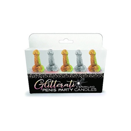 Pensate per una sposa dal gusto, dallo stile e dalla classe impeccabili, le nostre candele a forma di pene Glitterati eleveranno la vostra prossima festa di addio al nubilato o di anniversario allo status di VIP. Le nostre eleganti candele da 2 pollici sono di tendenza per la stagione dei matrimoni e presentano tre candele dorate e due argentate. Completate il look con i palloncini Glitterati, i piatti, i tovaglioli e molto altro ancora!