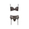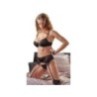 lingerie tre pezzi reggiseno perizoma reggicalze nero con pizzo trasparente sexy