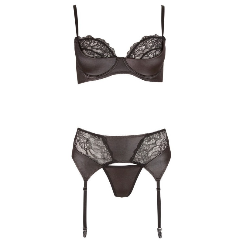 Set di 3 pezzi di lingerie: reggiseno, perizoma e cintura per bretelle! Seduzione sottile! Indossa il reggiseno, indossa il perizoma e indossa la giarrettiera: il sensuale nero abbinato al delicato pizzo floreale mette a fuoco gli incantesimi femminili e lusinga tutti i toni della pelle. Le mezze coppe del reggiseno sono lavorate con ferretto e leggermente foderate: perfetta vestibilità e classico look seducente in una!
