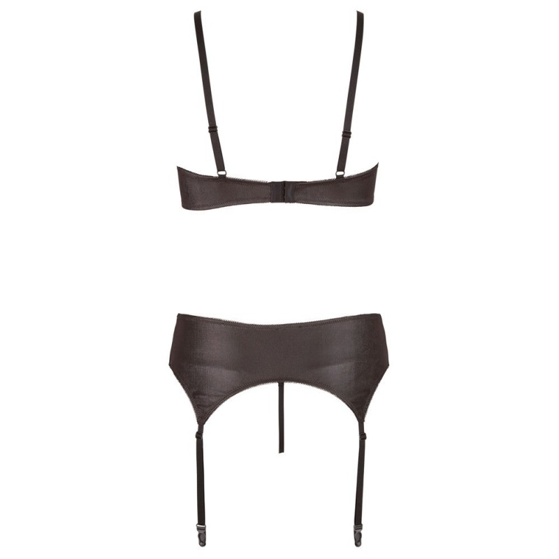 Set di 3 pezzi di lingerie: reggiseno, perizoma e cintura per bretelle! Seduzione sottile! Indossa il reggiseno, indossa il perizoma e indossa la giarrettiera: il sensuale nero abbinato al delicato pizzo floreale mette a fuoco gli incantesimi femminili e lusinga tutti i toni della pelle. Le mezze coppe del reggiseno sono lavorate con ferretto e leggermente foderate: perfetta vestibilità e classico look seducente in una!